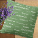 Dieses schöne grüne Kissen ist ideal für den Gärtner. Das schicke Design besteht aus verschiedenen Gartenthemen, wie z.B. Dauerhaftigkeit, Gewächshaus und Schuppen. Verschiedene Schriftart werden für Kontrast und Interesse verwendet. Die Wörter sind über das Kissen verteilt, während die Rückseite des Kissens schlicht grün ist. Ein ideales Geschenk für Gartenliebhaber.
