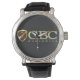 Uhr, Vintage Männeruhr mit schwarzem Lederarmband