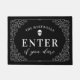 Begrüßen Sie Ihre Gäste mit dieser spöttisch-schicken Halloween-Pforte! Das Design weist einen schwarzen Hintergrund auf, in dem Ihr Name oben gebogen wird und unten "Enter if you wage" steht. Ein filigraner Rahmen und ein Skelettakzent vervollständigen dieses unheimliche Halloween-Design.