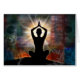 Meditator, der im Grußgebet mit buntem abstraktem Hintergrund und leuchtendem Licht durch Daniel B. Holeman sitzt