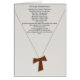 Das Gebet von Heiligem Francis auf einem beige strukturierten Hintergrund und der Aufmachung der Creme eines einfachen hölzernen Kreuzes auf einer schlichten Kette. Dieses einfache Gebet und Kreuz ist von der Armut, von Bescheidenheit und von Einfachheit symbolisch, die durch St Francis von Assisi gekennzeichnet werden.