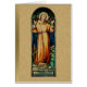 Heiliges Franziskus von Assisi Geborener Giovanni Di Pietro di Bernardone (1181/1182 - 3. Oktober 1226), war ein italienischer katholischer Mönch, eine Diakon und ein Prediger. Er gründete den Auftrag der Männer des Mönch-Minderjährigen, den Auftrag der Frauen des Heiligen Clare, den dritten Auftrag des Heiligen Franziskus und den Schutz des Heiligen Landes. Dieses ist ein schönes Buntglasbild von St Francis mit einem Gold ähnlichen Spitzehintergrund. Auf der linken Seite der Karte ist das Gebet von St Francis.