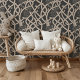 Gebundene Eleganz: Schwarzer und Beige Blütenvogel Tapete