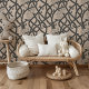 Gebundene Eleganz: Schwarzer und Beige Blütenvogel Tapete