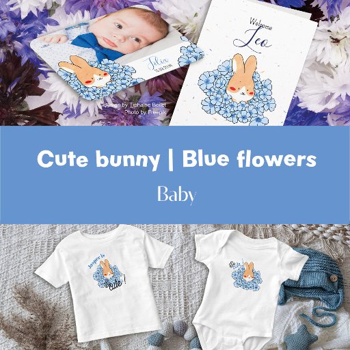 Lapin mignon et fleur bleueDesignt von Tiphaine Boilet