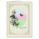 Eine wunderschöne BlumenGeburtstagskarte für den Fall, dass Sie etwas spät dran sind. Ein wunderschöner Blumenstrauß mit blauen und weißen Blume und einem braunen Schmetterling. Das Bild hat einen zarten goldenen Rahmen.