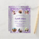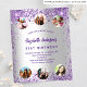 Eine mädchenhafte und weibliche 21. (oder jedes Alter) Geburtstagsfeier Einladung. vorne: Ein trendy Imitat silber aussehend Hintergrund. Dekoriert mit dunklen lila Imitaten Glitzer, Glitzern. Personalisieren und fügen Sie einen Namen, Party-Details und 6 Fotos. Der Name wird mit einem handgeschriebenen Stilskript geschrieben, lila Buchstaben. Zurück: Imitate silberner Hintergrund und Imitat Glitzer. 1 Blatt = 1 Einladung