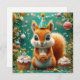 Charmantes Eichhörnchen mit festlichem Hut, umgeben von lebhaften Dekorationen und bunten Kuchen in einem spielerischen, fröhlichen Rahmen.