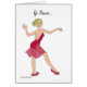 Junge Mädchen mit blonden Haaren und mit einem roten Kleid, tanzt.