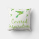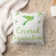 Schwenken Sie sich mit diesem weißen Kissen mit grünen Vögeln und Erholung eine Weile. Du bist in guten Händen, bedeckt von der Allmächtigen.