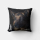 Schwarzes Kissen mit Bild eines deutschen Hirten, dass Sie mit Ihrem eigenen Bild oder Verwendung ersetzen können. Geben Sie den Namen und das Datum des Todes Ihres Tieres ein.