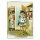 Vintage Grafik der Mutterkatze ihr kleines Kätzchen oben auf einem Schemel fangend, der einen Geschmack der guten Sachen in einem Glas snitching ist.