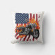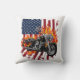 Geflammtes Fahrrad unter amerikanischer Flagge Kissen