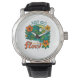 Uhr, Vintage Männeruhr mit schwarzem Lederarmband