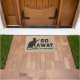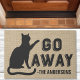 Funny Trendy Go Away Cat Doormat mit modernen Imitate Burlap Hintergrund. Maßgeschneiderte Matte mit den Worten "Go Away", geschrieben in einem coolen schwarzen Typografie-Schriftart. Diese lustige Katze liebt Türmatte wird sicherlich jeden Gast begeistern, der sie trifft.