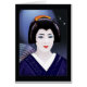 Digitale Illustration, die einen stilisierten Geisha darstellt und Farbstudien anstellt.