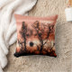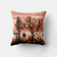 Bauholzwolf-Gesichts-Foto überlagerte über einem Einstellungssonnehimmel mit silhouettiertem Baum-Foto, um ein mystisches Wolfgeist Throwkissen in den Farben herzustellen, die von Rose zu Rost reichen