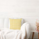 Gelbes Kissen mit karierter Keule. Klassisches schick minimalistisches Design. Gemütliches Bauernhaus oder boho Wohngestaltung. Einfaches kariertes Muster. Moderne Zuhause ästhetisch.