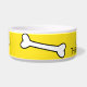 Weiße Keramik Hundefutter / Wasserschüssel, mit Gelb, um die Außenseite. Graphics of Cartoon Knochen, laufen um die Außenseite der Schüssel. Schwarzer, benutzerdefinierter Text auf der Vorderseite, ist bereit, zu personalisieren, für Ihr Haustier oder als eine tolle Geschenkidee für jeden Haustierbesitzer. Es stehen passende Heimtierprodukte zur Verfügung.