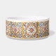 "personalisierter Haustiername", "Hundekatze fütternd Schüssel", "gelb rosa blaues Creme", "authentische mediterrane Keramik Fliesen", "traditionelles spanisches Gemälde", "quadratische abstrakte Fliesen", "Vintage antike, maßgeschneiderte Schüssel", "Personal Welppy füttre", "italienisch sizilianischer portugiesischer Stil", "hübsche goldene sommerische goldene sonnasse"