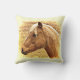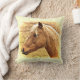 Dieses Kissen ist mit einem schönen goldbraunen Pferd ausgestattet, das von der gelben Sonne beleuchtet wird.