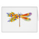 Künstlerisch bemalt, florale Libelle in kontrastierender Orange und lila mit gelben, hellen, blühenden kalifornischen Mohn und blauen Wildblumen auf weißem Hintergrund.