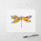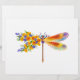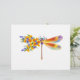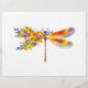 Künstlerisch bemalt, florale Libelle in kontrastierender Orange und lila mit gelben, hellen, blühenden kalifornischen Mohn und blauen Wildblumen auf weißem Hintergrund.