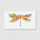 Künstlerisch bemalt, florale Libelle in kontrastierender Orange und lila mit gelben, hellen, blühenden kalifornischen Mohn und blauen Wildblumen auf weißem Hintergrund.