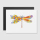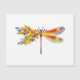 Künstlerisch bemalt, florale Libelle in kontrastierender Orange und lila mit gelben, hellen, blühenden kalifornischen Mohn und blauen Wildblumen auf weißem Hintergrund.