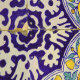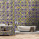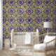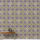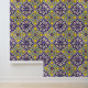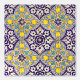 Beeinflusst von handgemalten traditionellen blauen und gelben Fliesen aus Spanien, Portugal und Italien. Muster der Perfektion. Azulejo blauen und gelben Blumenblüten Fliesen Kunstwerk. Die perfekte Dekoration, das ideale Geschenk für jeden Anlass. Ein wunderschönes Sommerdesign, das gelbe Blumen mit ihrem Grün und Blüten mit einem Vintagen Blau und Weiß darstellt.