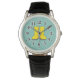 Uhr, Vintage Männeruhr mit schwarzem Lederarmband