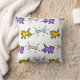Lila Hunde in Gelbmaul und blaue rosa Knochen Graffiti-Stil auf weißem Hintergrund. Individuell gestaltbares Kissen (Größe des Designs). Erhältlich in anderen Farben der Hunde und Knochen + türkisfarbener Hintergrund. Matching Baby Produkte: Babydecke, Gratulat, Mütze, Shirt und mehr.