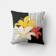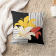 Hellgelbe und orangefarbene Lilien auf schwarzen und weißen Streifen wirbelkissen. Orangefarbene, gelbe und weiße Blume, die im Kontrast zu einem schwarz-weiß gestreiften Kissen stehen, verleihen Ihrer Wohngestaltung eine designvolle Touch. Suchen Sie in der Kissenkollektion nach koordinierenden Produkten.