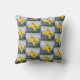 Gelber Rosenschnitt in Form Texas auf einem Hintergrund von Bluebonnets und blauer Himmel drucken auf Throwkissen. Druck auf der Rückseite ist ein kleineres Wiederholungsmuster