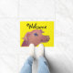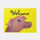 cutef Malerei eines rosa Schweins auf einem hellen gelben Hintergrund stellt diese niedliche willkommene Matte mit dem Text im Schwarzen - Willkommen her.