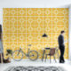 Golden gelbe und Elfenbeinkreuze Muster Cheery und Symbolisch Der Hintergrund gelb kann auf jede andere Farbe geändert werden, die Sie Anzug können Um die Größe des quadratischen Musters wiederholen, verwenden Sie 6, 12 oder 24 Zoll