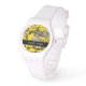 Gelbe und grüne Camouflage Ihr Name personalisiere Armbanduhr