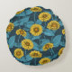 Gelbe Zinnien in dunkelblau Rundes Kissen