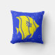 Gelber Fisch auf blauem PILLOW auf einer Seite und Gelb-Weiß-Streifen auf der Rückseite. Design von Sandy Closs. Teil der Kopfkissendekoration zum Thema Ozean. Design von Sandy Closs"