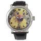 Uhr, Vintage Männeruhr mit schwarzem Lederarmband