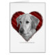 Ein Herzfilz Gruß für Labrador Retriever-Liebhaber am Valentinstag, am Tag der Mutter, am Vatertag oder an irgendeinem Tag. Ein realistisch ausführliches Porträt von Sam, ein gelber Labrador, gezeichnet durch Pop Künstler Susans Donley aus einem satiny Herzen heraus, um seine Liebe zu teilen.