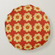 Akzentuieren Sie Ihre Zuhause mit diesem runden Kissen, das das Foto einer gelben Dahlia-Blume auf einem hellen, roten Hintergrund zeigt und in einem sich wiederholenden Muster gedruckt wird. Ein lustiges Blumendesign! Wählen Sie Ihren Kissen Stoff Stil.