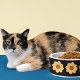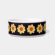 Keramik Haustierfutterschale für Ihre Katze oder Ihren Hund, die das Foto einer gelben Dahlia-Blume vor schwarzem Hintergrund zeigt und in einem sich wiederholenden Muster gedruckt wird. Ein schönes, blumengeschmücktes Design! Wählen Sie Ihre Schüssel Größe.