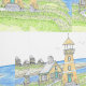 Handgezeichnetes gelbes Leuchtturm-Tapete