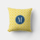 Gelbes und Navy-Quatrefolienmuster Custom Monogram Kissen