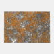 Grafische Kunst, die wie ein Fleckchen mit goldfarbener Orange über weißgraues Rauch aussieht.
