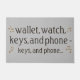 Geldbörse, Uhren, Schlüssel und Telefontür Fußmatte