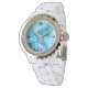 Frauenuhr in einem Edelstein-Sklavenmuster aus blauem Bahia-Granit in Himmelsblau mit tiefer königsblauen Flecken