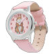 Diese originelle, trendige Kinderuhr zeigt ein niedliches, braunes Hasen auf der Armbanduhr, der Hase sieht vor dem rosa Hintergrund des Uhrengesichts gut aus, und die rotbraunen Zahlen sind fett genug, dass jeder sehen kann. Die hübsche rosa Uhr hat auch einen passenden rosa Gurt. Dieses kuschelige Tier hält einen Haufen farbiger Blume und hat ein fröhliches Lächeln im Gesicht. Die süß-braune Kaninchen-Illustration sieht auf dieser Kinderustration großartig aus und wird Kinder jeden Alters anziehen. Jede Frau wird diese coole und einzigartige niedliche Baby-Hunny-Zeit Liebe. Das originelle, sonnige Bild ist in Aquarell gemalt.