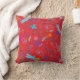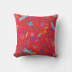 Mod und zeitgenössisches Kissen entwerfen in den klaren Farben auf einem roten Hintergrund. Ausrüstungsbeschreibungslibellen, -schmetterlinge und -marienkäfer mit Blumen- und des Spaßes neuen Retro Drucken Paisleys. Dieses gemusterte rote Kissen zwei hat das karierte Korrelat auf der Rückseite als Wahl. Muster sind auch auf Servietten und anderen Einzelteilen verfügbar. Es gibt drei Versionen "des Sommer-Picknicks" und jedes ist einzigartig. Designer C.J. Arnsman.